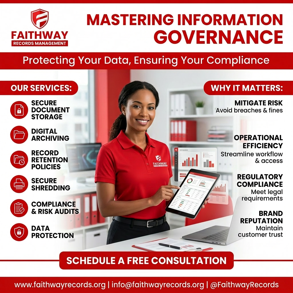 Our Information Governance officer is responsible for creating and enforcing the strategic framework that manages a company’s information as a valuable asset. While records management focuses on the lifecycle of documents, information governance is the “umbrella” that covers the management, policy and control for all data—both structured (databases) and unstructured (files/emails).